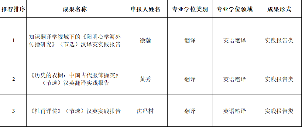 经公司审核、公司翻译专业学位培养指导委员会投票排序,现对2023年浙江省专业学位研究生优秀实践成果评选参评研究生推荐结果公示如下: