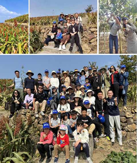 23日上午,团队从下沙校区出发经文一校区前往富阳新登黑山顶,黑山顶种植百亩红高粱梯田,沉甸甸的高粱穗子似点燃的一束束火把,与墨绿群山、蓝天白云构成一幅美丽的风景画。下午,团队前往基地采摘猕猴桃,沉甸甸的猕猴桃挂满枝头,彰显着丰收的硕果。老师们徜徉在秋景中,体验采摘的野趣,在繁忙的工作中短暂休整,为后续的工作加油注能。