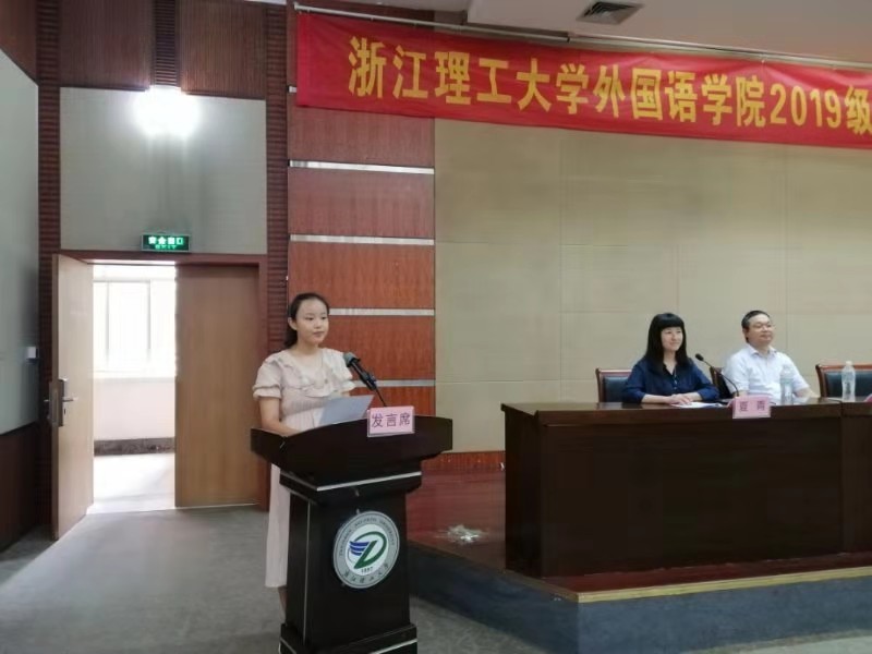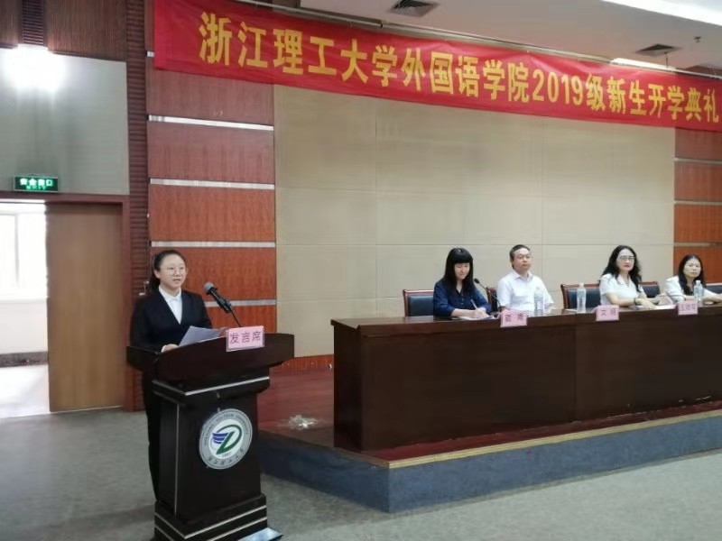 典礼最后,公司党委书记王晓军发言。她首先对2019级新生加入外院这个大家庭表示最热烈的欢迎,向新生们简单地介绍了公司和公司的发展现状,希望新生来到浙理外院要时刻牢记四个“学会”:学会学习,以语言为契机;学会忘却,重新开始浙理的学习,唯不忘父母、师长之教诲和朋友、同学之情谊;学会相处,与来自五湖四海的同窗和谐共处;学会成长,在浙理成长为更好的自己,不负韶光。