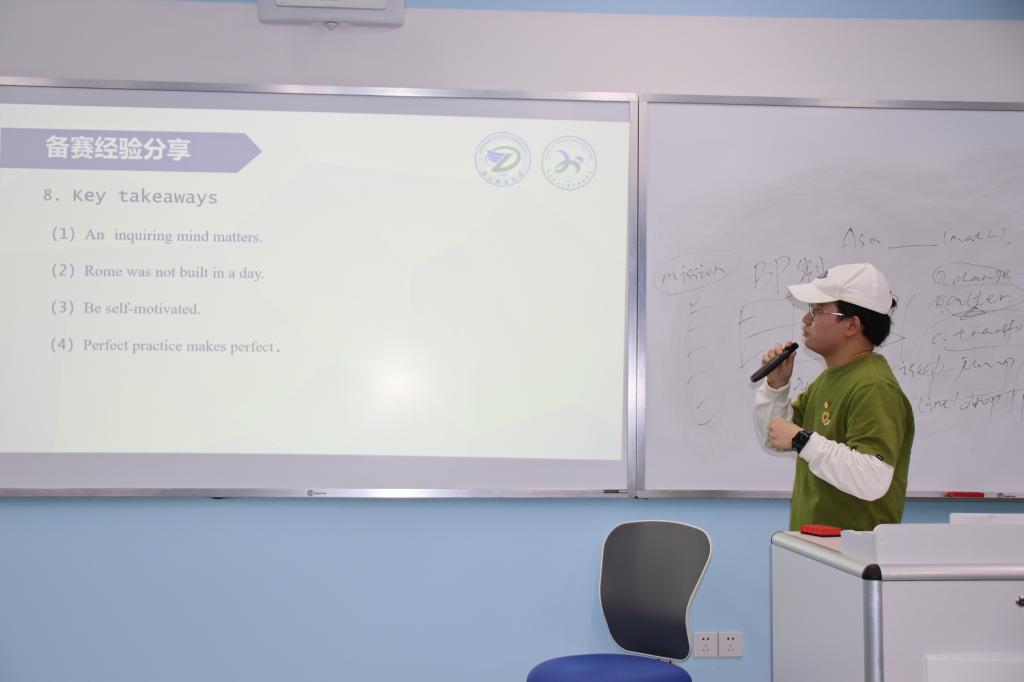 公司邀请往年全国一等奖获得者邓嘉凯、省一等奖获得者龚旭韩进行“2022年全国老员工英语竞赛”经验分享,分析考试题型,明确备考方向,掌握学习方法,提高学习效率,着力解决备赛中的重难点问题,为同学们的备考护航;邀请雅思高分(8.0)员工袁一萌进行“雅思备考”学习经验分享,从雅思考试对于深造、就业等方面重要性出发,分享考试成功经验,提高同学们对外语学习的能力。