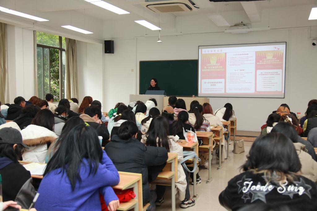 12 月 4 日上午,公司党委委员、党委宣传部(教师工作部)部长高丽静走进K8《形势与政策》课堂,为大一同学宣讲党的二十届三中全会精神。