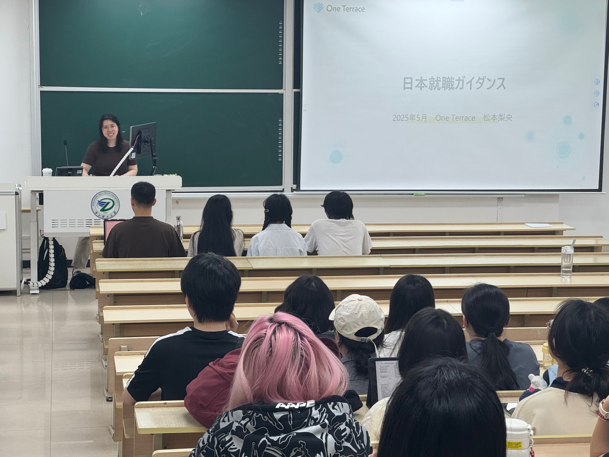 宣讲会上,来自日本的知名公司One Terrace(壹平台),围绕企业文化、岗位需求、招聘流程及员工福利等内容展开详细介绍。其中,企业招聘负责人松本梨央表示:“随着中日经贸合作深化,兼具日语能力与专业素养的中国青年人才备受青睐。我们期待通过校企合作,吸纳更多优秀学子加入,共同开拓国际市场。”