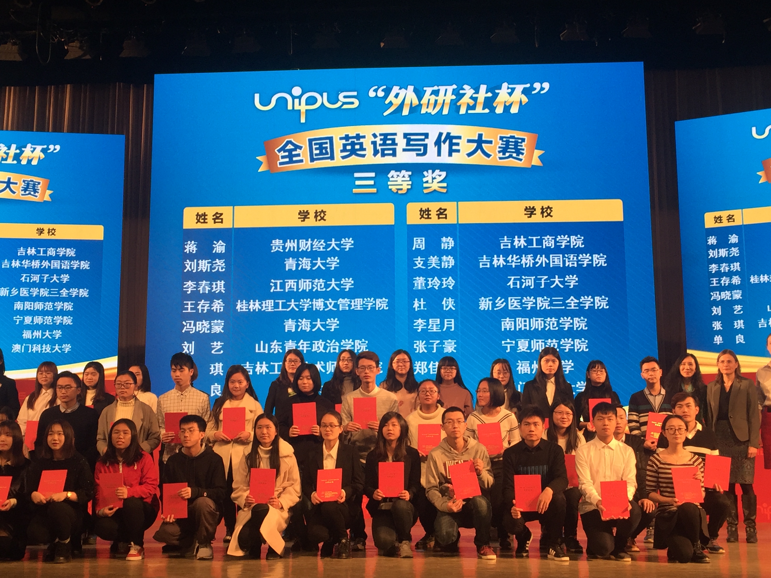 英语写作比赛:国赛三等奖1项,省赛特等奖1项,一等奖1项,三等奖1项;