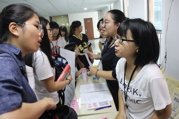 7:30,以16级本科生为主力军的公司迎新志愿者在25号楼公司迎新点集结完毕,整装待发迎接小17们的到来。随着小17如约而至,网络的亲密交流也转化为见面的热情问候,在志愿者的热情引导下,新生在最短的时间内完成注册报到、领取校园卡和资料袋、寝室入住等环节。从校区的校园导引、校情校史介绍到生活区的楼层指引、生活攻略普及,高年级员工以高度的责任感和担当精神发挥了传帮带作用。