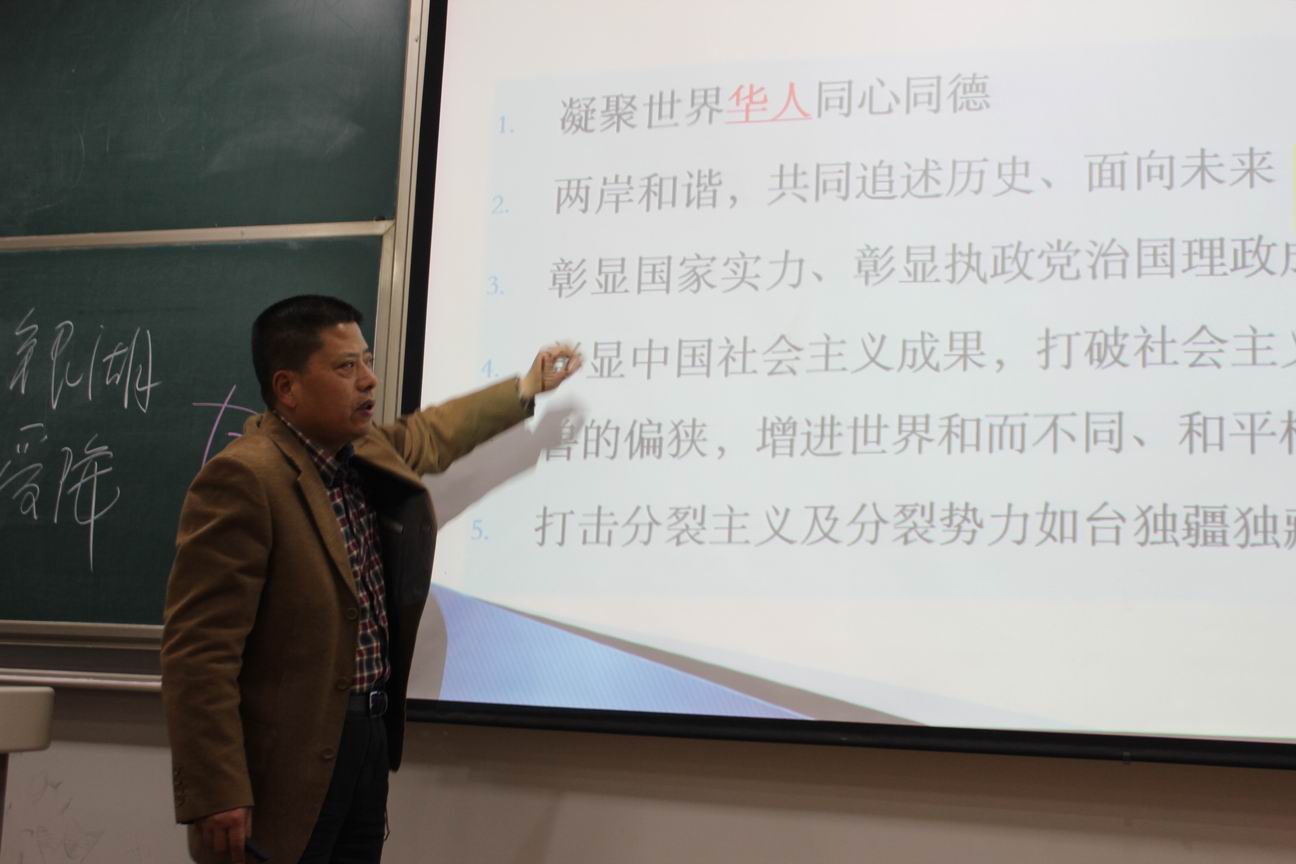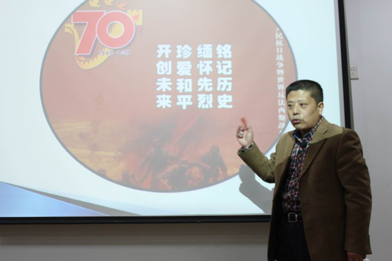 讲座中,渠教授紧紧围绕抗战胜利七十周年纪念活动的主旨,以“铭记历史、缅怀先烈、珍爱和平、开创未来”这十六字的纪念口号与宗旨作为贯穿始终的精神,通过大量的实例,声情并茂地铺展开来。特别是渠教授通过自身亲自参与的各种纪念活动,为同学们叙述那段满是伤痛的抗战史以及开展纪念活动的重要意义。他从学术价值、道德意义、政治意义、外交价值四个维度,对纪念活动作了全面的肯定。然后,从习近平主席在抗战纪念阅兵大典上的讲话中提及的“十四年”说起,认为这是一个修正历史观的观点,应该宣传将我国的“八年抗战”之说修改为“十四年抗战”。最后,渠教授在讲述日本侵华的野蛮行径之后,以当前中日关系中的正负能量为例,再次重申了抗战纪念活动的意义所在,并且鼓励日语系的同学们好好学习,以后多向海外传播我国的思想。随后有同学提问了关于抗战影视中为何国民党的戏份很少的问题,渠教授也作了详细的解答。