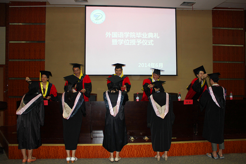 随后,主席台就坐老师身着导师服为公司2014届毕业生颁发学位证书并行正冠拨穗礼。同时,14名毕业生受聘为公司2014届员工联络员。