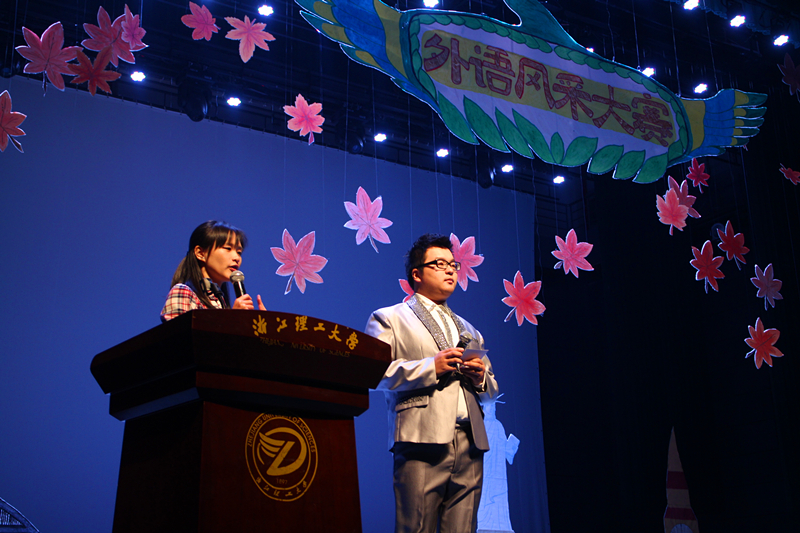 大赛分两个环节。首先由选手进行两分半钟的主题演讲,再由评委针对选手的演讲进行提问,选手需在规定的时间进行即兴回答;第二环节是选手的才艺展示。首先进行的是英语组比赛,选手就“LearnToWalkBeforeYouCanRun”为主题进行演讲。选手或根据自身经历来阐述,或是引经据典来佐证这一观点“先学走,再学跑”。1号选手李彬彬通过《道德经》的引用来解释大赛演讲主题,她认为在开跑之前我们学会的是走路,通过辩证法的思想向我们展现了由学习走路到练习奔跑的阶段。最有意思的是3号选手俞丹娜。她认为“跑”是一个尝试的过程,她的主题“30天尝试一项新鲜事”让在场的观众留受益匪浅。4号选手邓航则从另一个切入点“捷径”来剖析主题。她巧妙地把“奔跑”上升到人生这个宏大的主题。“奔跑”无捷径,人生更无捷径。其后是选手的才艺表演环节。选手们或是进行《狮子王》的电影配音,或是进行热辣的英文歌曲演唱,又或是进行创意性的表演——重温经典《泰坦尼克号》,引起台下掌声阵阵。接着是日语选手的精彩演讲。日语选手用温润的嗓音向观众娓娓述说着她们各自关于日语的故事。才艺表演环节上,选手们或是演绎日本古老传说中的感人故事《雪女》,或是演唱空灵的《雪の花》。她们举手投足间无不体现了一种类似江南女子般的温婉气质。