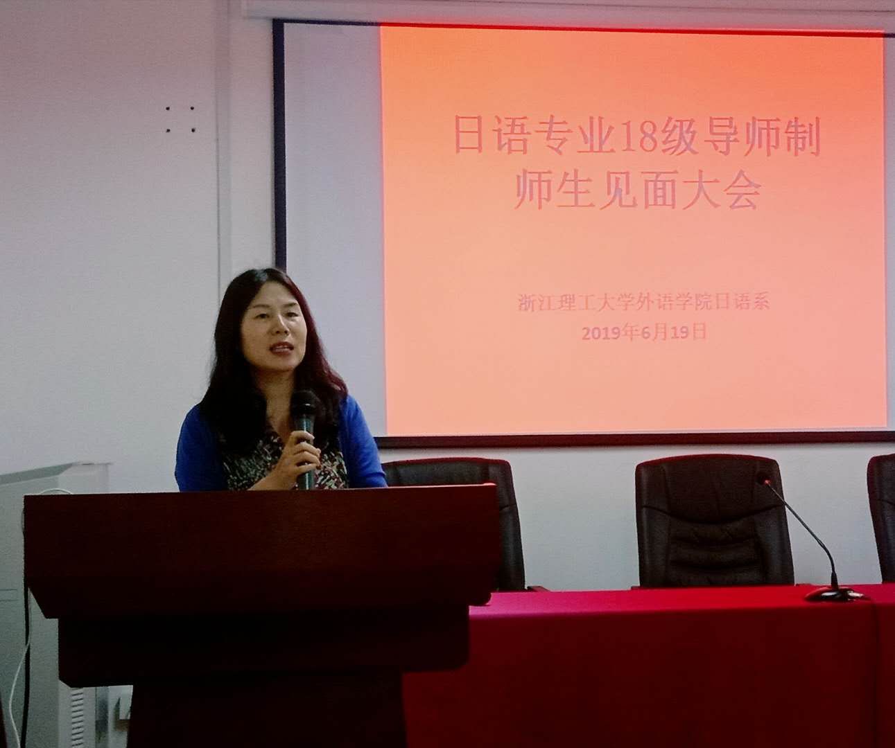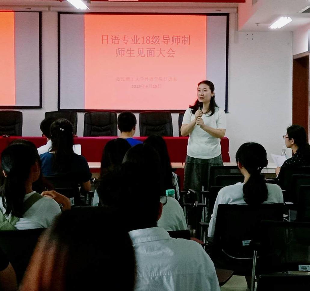 2019年6月20日上午,日语专业18级导师制师生见面大会在25号楼718会议室召开。日语系系主任徐青老师主持会议,付明端副经理到会指导,黄学杰、张丽山、邬海厅、徐芳芳、王慧妍、芦晓博老师以及全体18级日语系员工共同参加会议。