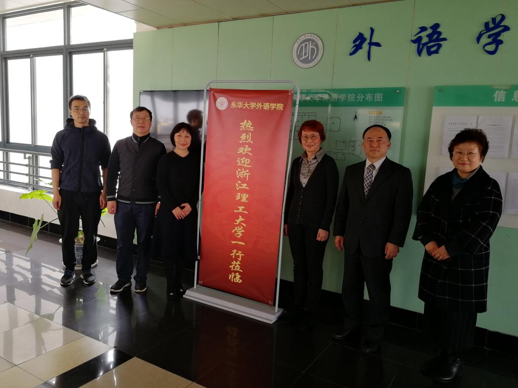 调研活动的第一站是东华大学。东华大学日语系成立于2002年,是东华大学重点学科、教育部·财政部“国家级特色专业建设点”。2005年开始招收硕士研究生,2010年获批招收全日制翻译硕士专业学位(MTI)研究生。目前本科阶段日本语言文学专业下设语言文学、国际经济与贸易2个方向,开设专业必修课程和选修课程多达56门。在专业教学方面,实行精英教学,每年限招46名。在团队建设方面,依托“日本研究”文科基地、“日本近现代研究中心”、“日语教材研发中心”积极展开教学、学术、科研活动,成果丰硕。