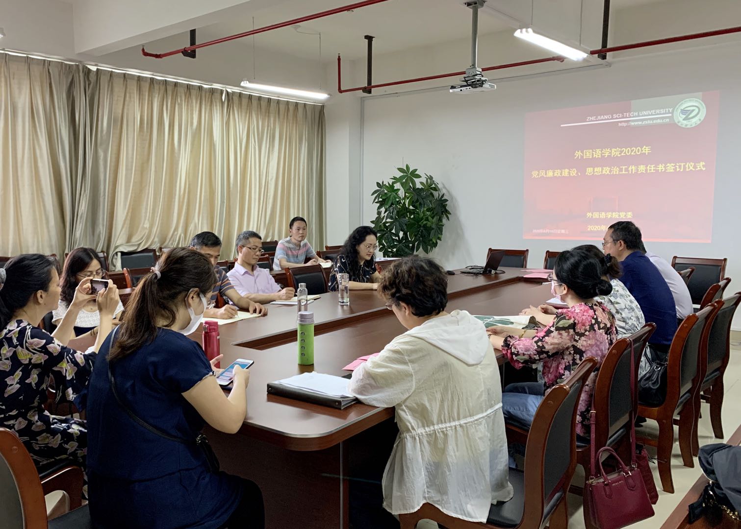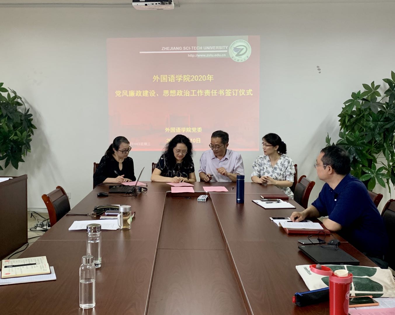 党委书记王晓军和经理何庆机代表公司和公司内设机构负责人及教工党支部书记代表签订了2020年党风廉政建设和思想政治工作责任书。