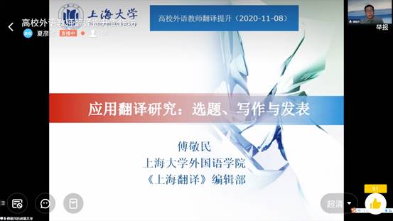 11月7日至11月8日,公司徐芳芳和李侠老师参加了由《上海翻译》编辑部与复旦新学术、复旦大学出版社、经世书局联合举办的“高校外语教师翻译提升线上研修”工作坊。来自全国的近120名教师参加了这次线上研修。