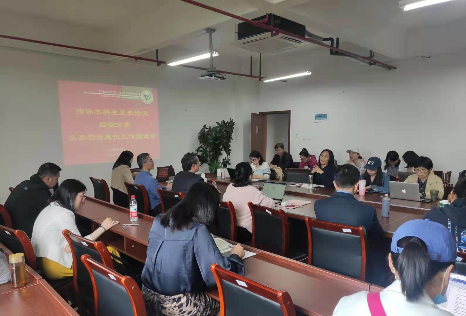 4月21日下午,全体英语专业本科生毕业论文指导老师在612会议室参加了“指导本科生发表论文经验分享及实习信息化工作推进会”。会议由英语系副主任金奕彤老师主持。