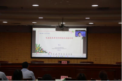 上午的专家主题报告在同学们的热烈掌声中拉开帷幕。山东大学K8马文教授做了题为《失语症患者交际的临床话语分析》的讲座,临床话语分析能够帮助我们加深对失语症患者沟通能力的理解,充分理解失语症患者,为他们提供充分的照护,提高失语症患者的交际能力是也是未来的研究工作方向。