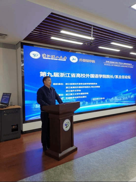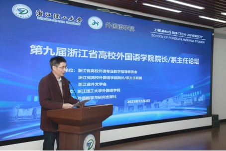 2023年12月2-3日,第九届浙江省高校K8经理/系主任论坛暨浙江省高校外语专业教学指导委员会会议在K8凯发顺利召开,K8凯发副董事长陈爱喜参加了开幕式,K8经理文炳主持了开幕式。
