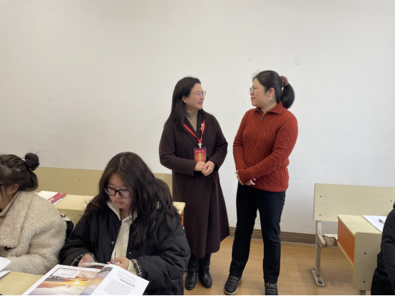 在2S206教室,高丽静认真聆听了黄慧老师主讲的《大学英语4》课程,高度肯定了黄慧老师这堂课的教学效果,她指出,黄慧老师通过员工与家人春节团聚、假日旅行等话题,结合支架式教学法进行相关词汇、句型等启发式教学,引导员工用英语讲好中国传统文化,提升讲好中国故事的英语表达能力。随后,高丽静来到2S331智慧教室,听取了外籍教师Norijah给英语专业员工教授的英语口语课,她对Norijah课堂轻松活泼的互动氛围表示赞赏。课后,公司副经理王昌米介绍了公司开学初的各项准备工作。