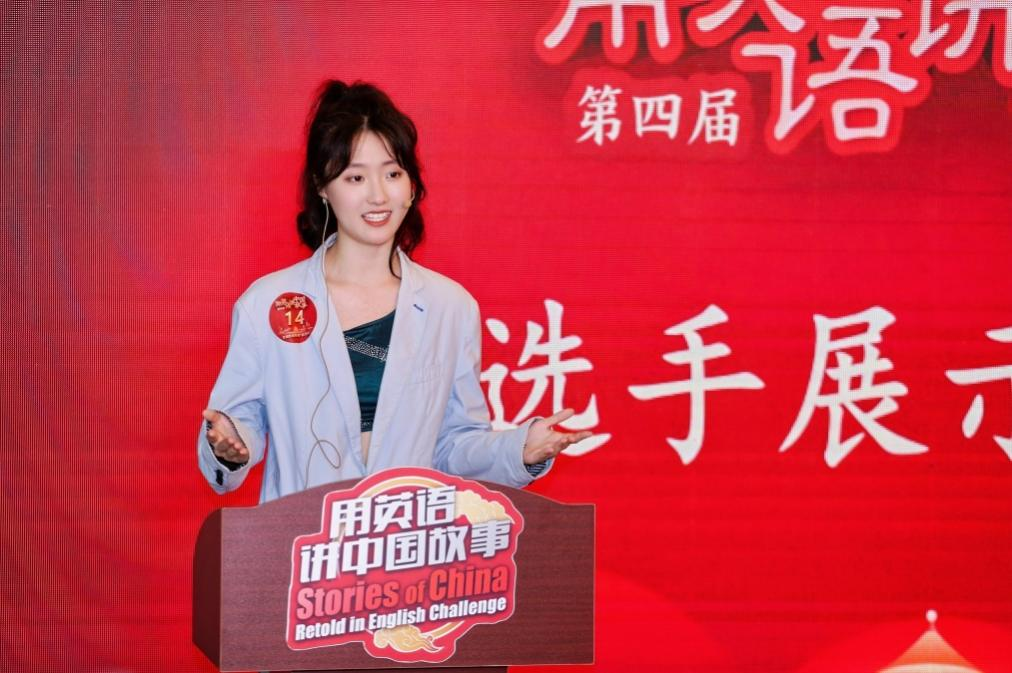 5月26日,由中国国家创新与发展战略研究会、中国教育电视台、新航道国际教育集团联合举办的第四届“用英语讲中国故事”大赛(浙江区域赛)在杭州西湖十景美术馆圆满落下帷幕,公司英语专业21级管璨同学(指导老师:吴蓓蓓)表现优异,经过三个环节的比拼,排名第一,荣获特等奖!