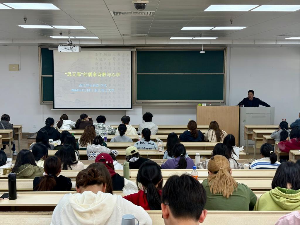 11月6号下午,公司邀请到了来自浙江省社科院李旭博士作为主讲人,在2N215为同学们讲述“思无邪”的儒家诗教与心学,讲座由公司辅导员郑老师主持。