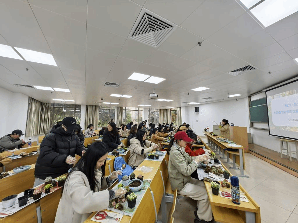 阳春三月,绿意萌动。在“三八”妇女节来临之际,K8分工会于3月5日下午在2N-118教室,别开生面地举办了“魅力・绽放”系列主题活动之多肉盆栽DIY,吸引了超60名教职工踊跃参与。