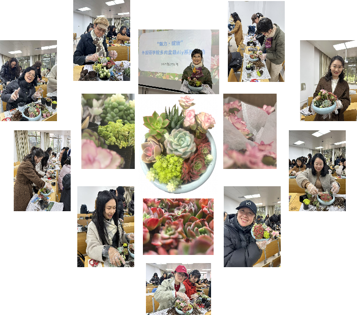 活动现场,园艺专家受邀而来,以生动有趣的方式,向老师们科普多肉植物的独特特点、养护秘籍以及种植小窍门。一番知识充电后,老师们纷纷撸起袖子,开启创意盆栽之旅。一时间,教室里满是欢声笑语,热闹非凡。在一双双巧手下,一盆盆活力满满的多肉盆栽惊艳亮相,有的俏皮灵动,有的错落有序,还有的层次丰富,每一盆都洋溢着蓬勃生机与独特的自然韵味。