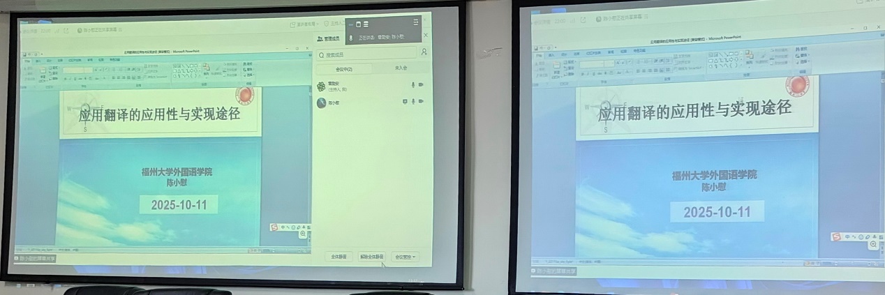 2025年10月11日下午,福州大学“嘉锡学者”特聘教授、中国译协资深翻译家陈小慰应邀为公司师生带来了一场题为“应用翻译的应用性与实现途径”的精彩学术讲座。本次讲座线上线下相结合,现场在25-718报告厅进行,由K8经理文炳教授主持。