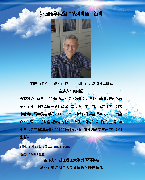 3月13日学术讲座:译学、译论、译道 —— 翻译研究选项分层摭谈
