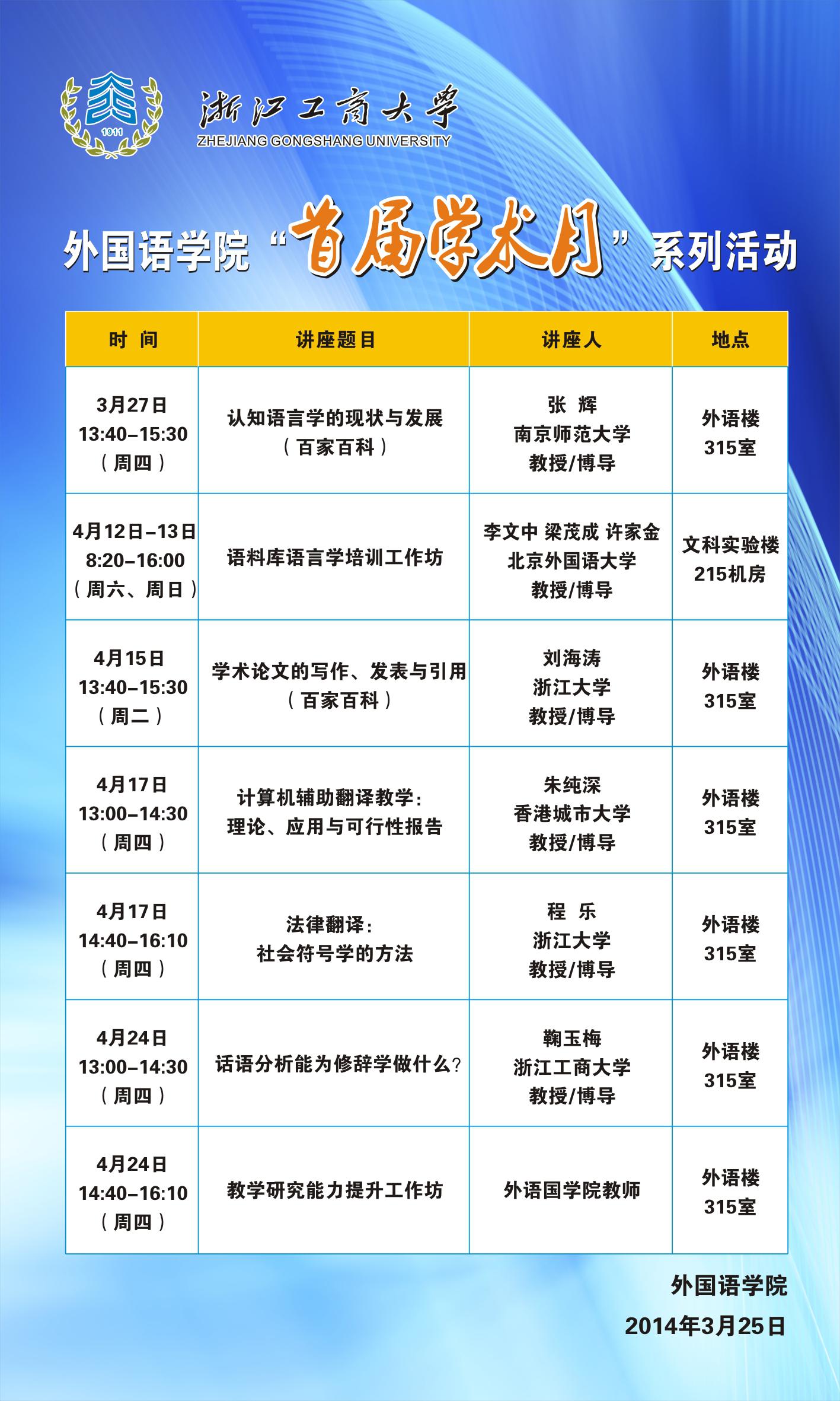 公司和浙江工商大学都是杭州市外文学会会员单位,鼓励资源共享,欢迎感兴趣的老师踊跃参加。详见以下工商大学“学术月”活动安排: