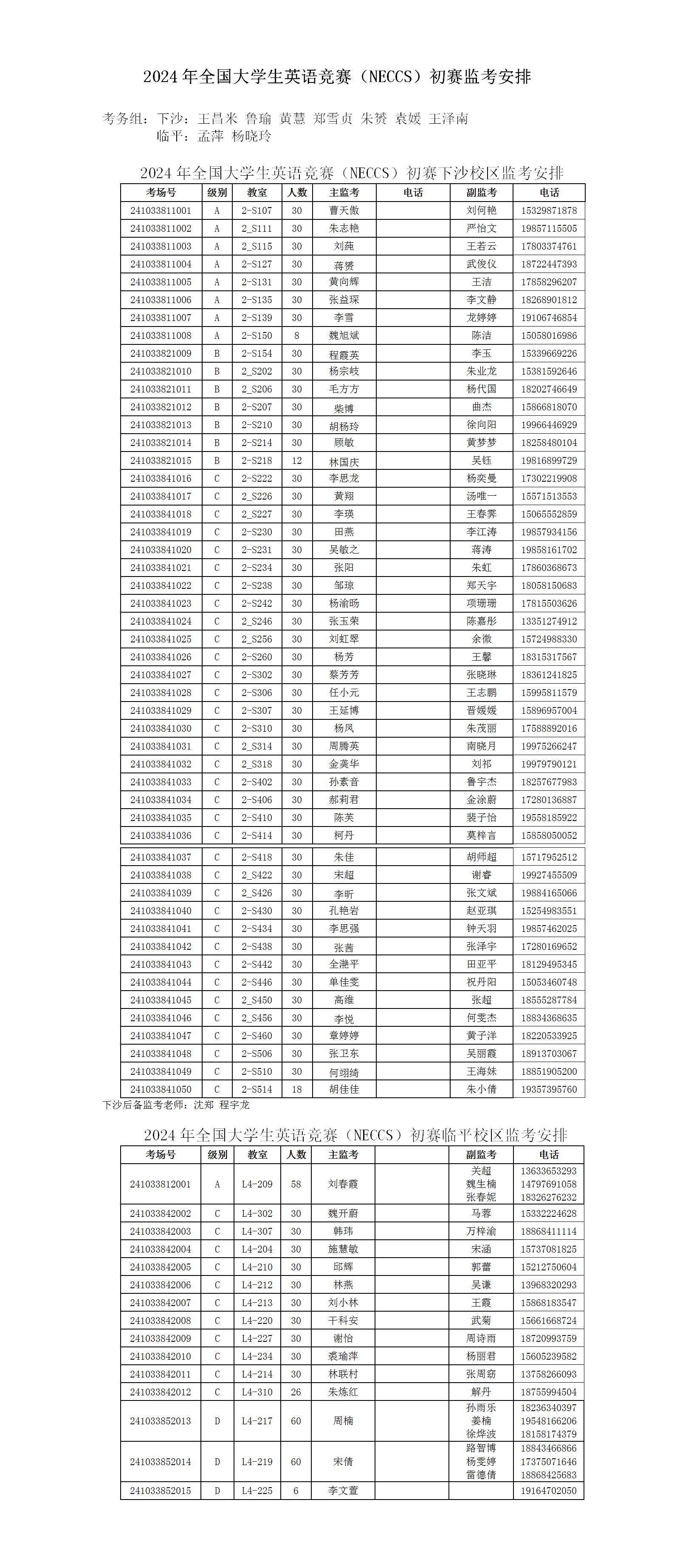 2024年全国老员工英语竞赛(NECCS)初赛监考安排