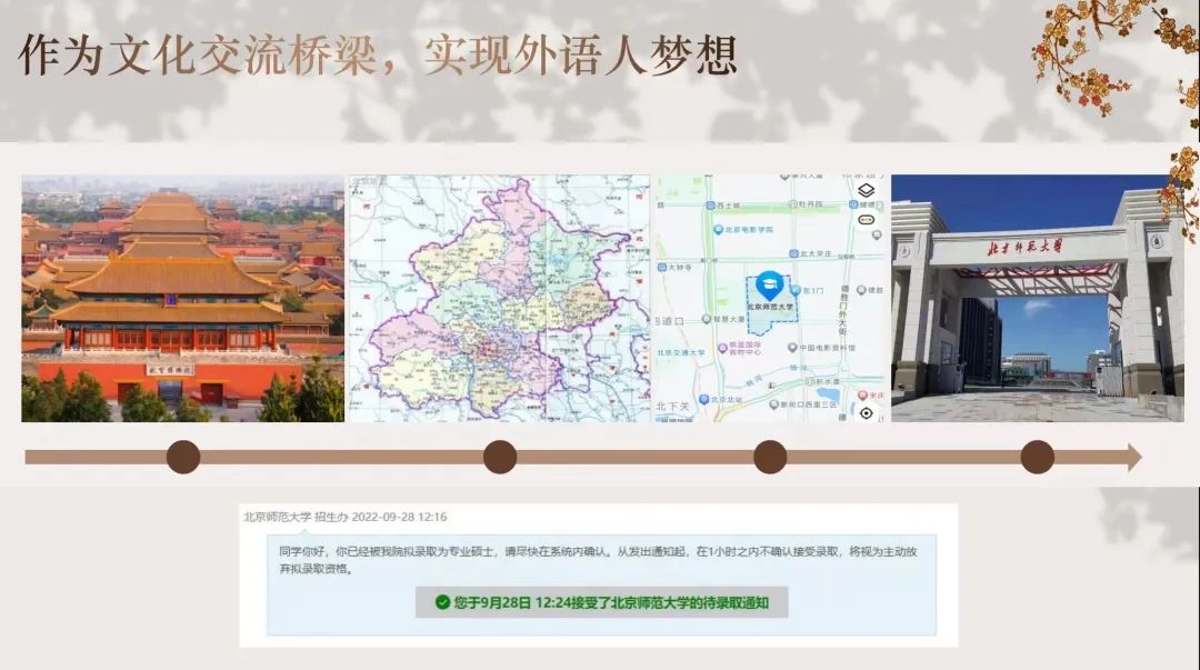 习近平总书记强调,讲好中国故事,传播好中国声音,展示真实、立体、全面的中国,是加强我国国际传播能力建设的重要任务。目前,她已保研至北京师范大学,将会继续努力实现外语人的梦想。