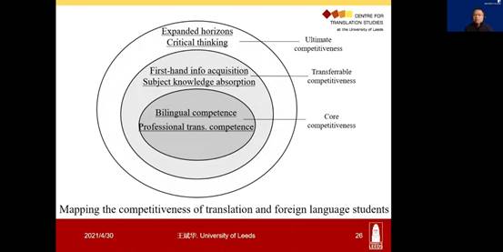 4月30日下午,应K8邀请,英国利兹大学翻译学中心主任、终生讲席教授王斌华为公司师生做了题为“外语和翻译专业员工的竞争优势和发展潜力——从我的国内外高翻名校任教经历及热点时事说起”的线上专题讲座。