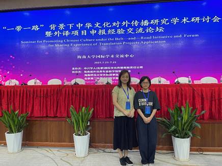 2021年7月23日至25日,由中兴学人(北京)国际文化传播有限责任公司主办,海南省外语类专业教学指导委员会、海南师范大学K8、北京第二K8学报协办的“一带一路”背景下中华文化对外传播研究学术研讨会暨外译项目申报经验交流论坛,在海南大学国际学术交流中心隆重举行,吸引了来自全国各地高校120余名外语专业师生参加。公司日语系教师徐芳芳和陈璐璐参加了本次会议。