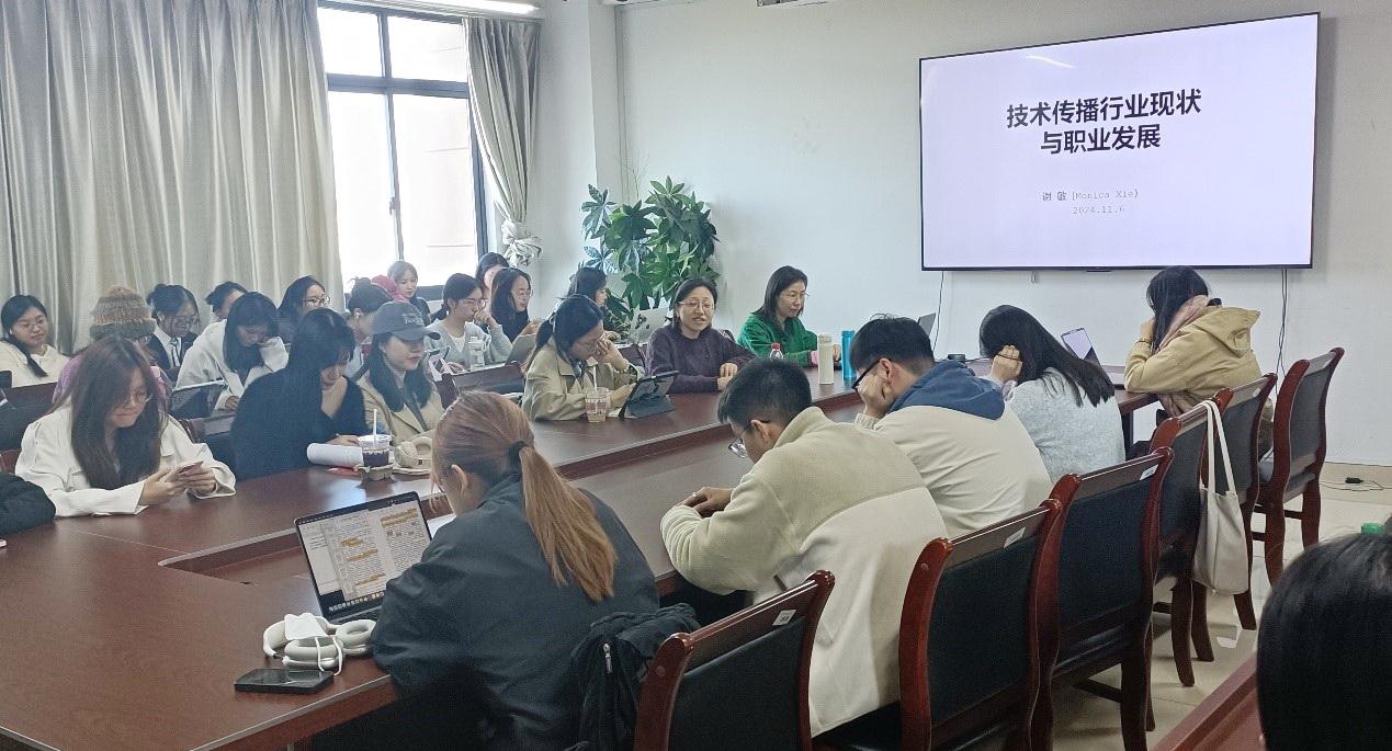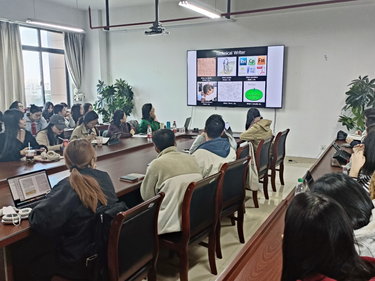 11月6日下午,Tcworld中国大会主办方成员、Infomagic公司联合创始人、中国贸促会技术传播专业委员会专家委员谢敏应邀为公司师生做主题为“技术传播的行业现状与职业发展”的讲座。本次讲座由英语系副主任顾敏博士主持,公司众多教师、硕士研究生参会并交流。