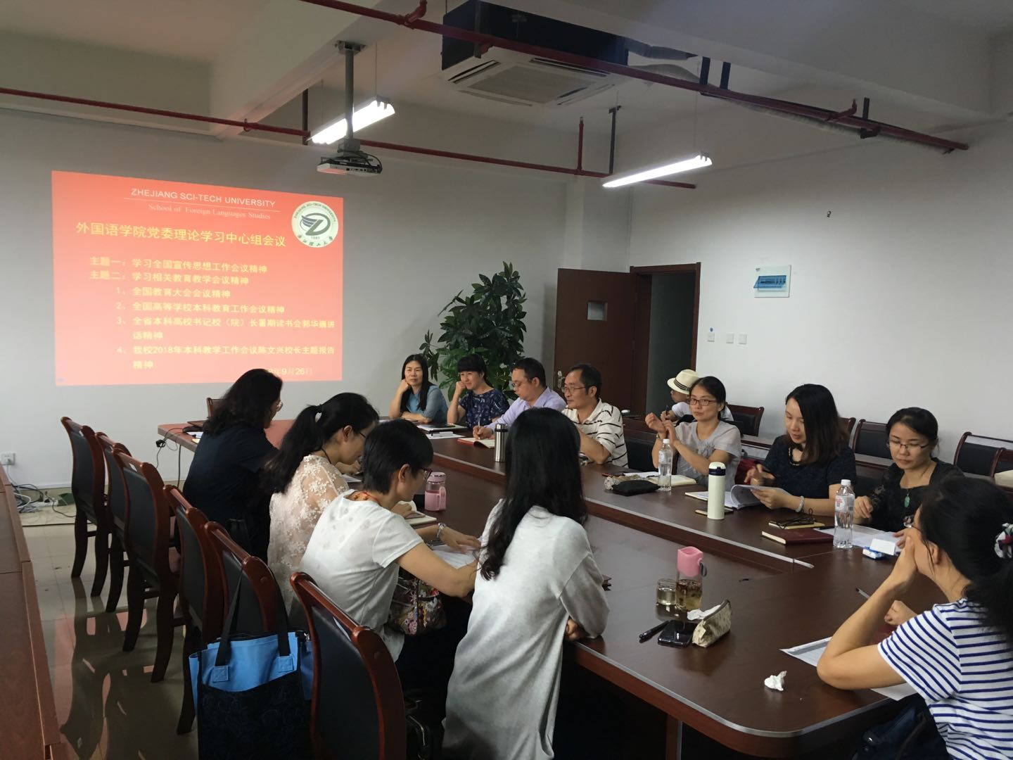 理论学习中心组主题讨论在25-612会议室进行,英语系、日语系、大学英语教学一部、大学英语教学二部、研究生英语教学部的主任们围绕全国宣传思想工作会议精神和全国、全省、全校相关公司产品会议精神进行了主题发言,并结合系部工作和员工实际进行了热烈讨论。王晓军书记最后做总结发言,她提出:全院应积极主动贯彻落实重大文件、会议精神;牢固树立新思想、新观念,并内化于心、外化于行;切实将会议精神和中心工作紧密结合,将思想统一到会议精神上来。