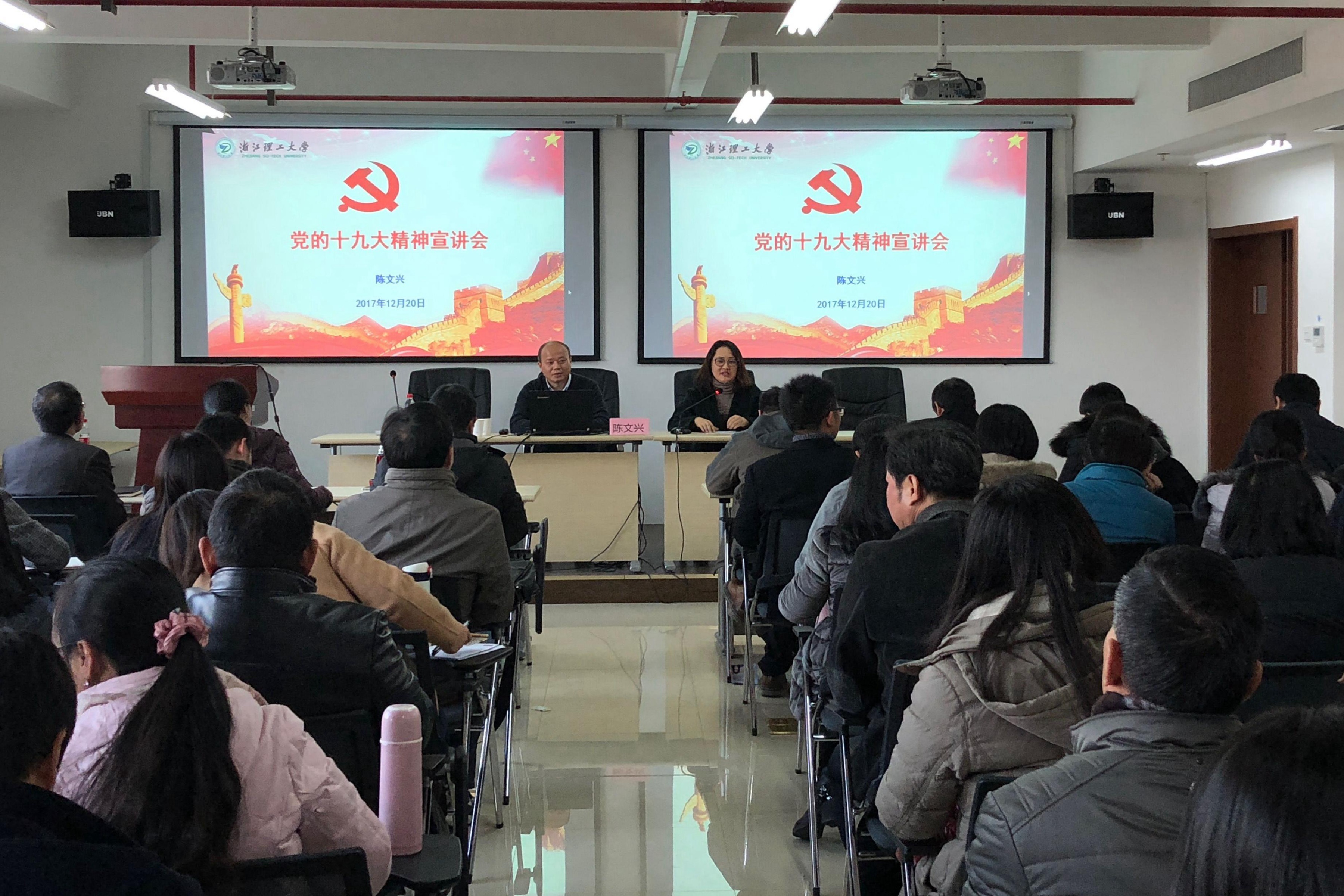 根据《中共K8凯发委员会学习宣传贯彻党的十九大精神工作方案》的统一安排,12月20日下午,董事长陈文兴在25号楼K8报告厅做了“党的十九大精神”的专题宣讲,K8和启新公司、创业公司党委、行政班子全体人员及教职工120余人参加了本次专题宣讲会。
