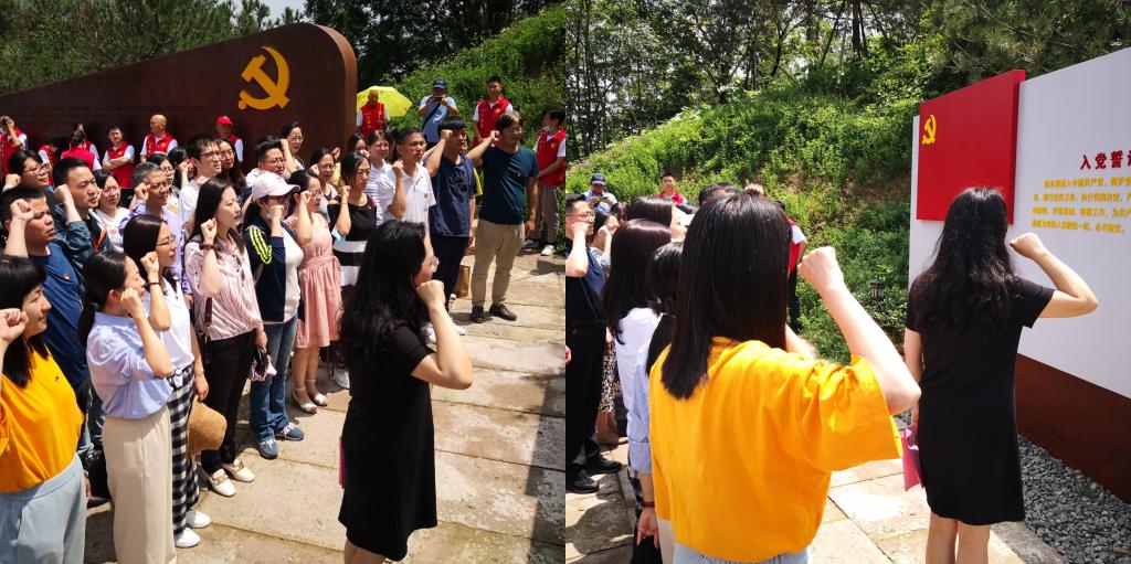 璀璨阳光照初心,牢记嘱托践使命。仲夏时节的陈望道故居处处闪耀着红色的光芒,面对鲜艳的党旗,公司党委书记王晓军神情庄重,带领教师党员举起右拳庄严宣誓:“我志愿加入中国共产党,拥护党的纲领,遵守党的章程,履行党员义务,执行党的决定,严守党的纪律,保守党的秘密,对党忠诚,积极工作,为共产主义奋斗终身,随时准备为党和人民牺牲一切,永不叛党。