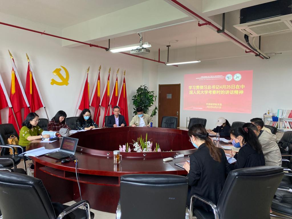 党委委员、副经理饶萍带领大家学习了习近平总书记在第十九届中央纪律检查委员会第六次全体会议上的重要讲话精神、省第十四届纪律检查委员会第七次全体会议决议精神,号召党员干部要进一步落实“一岗双责”,推动公司党风廉政建设,努力营造风清气正的育人环境。会议还学习了习近平总书记4月25日在中国人民大学考察调研时的讲话精神。与会人员围绕本次学习内容,开展了交流讨论。