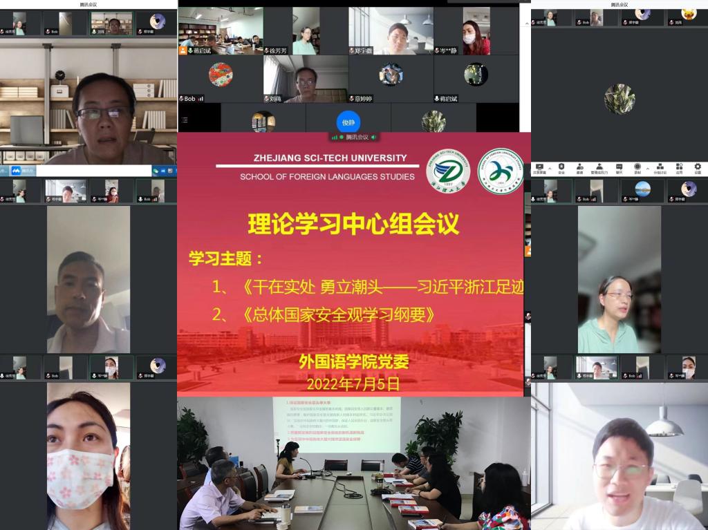 7月5日下午,公司党委在25-612会议室举行理论学习中心组会议,公司党委书记王晓军主持会议并对《干在实处 勇立潮头—习近平浙江足迹》进行导学,党委副书记夏青对《总体国家安全观学习纲要》进行导学,理论学习中心组成员通过线上、线下方式参加会议。