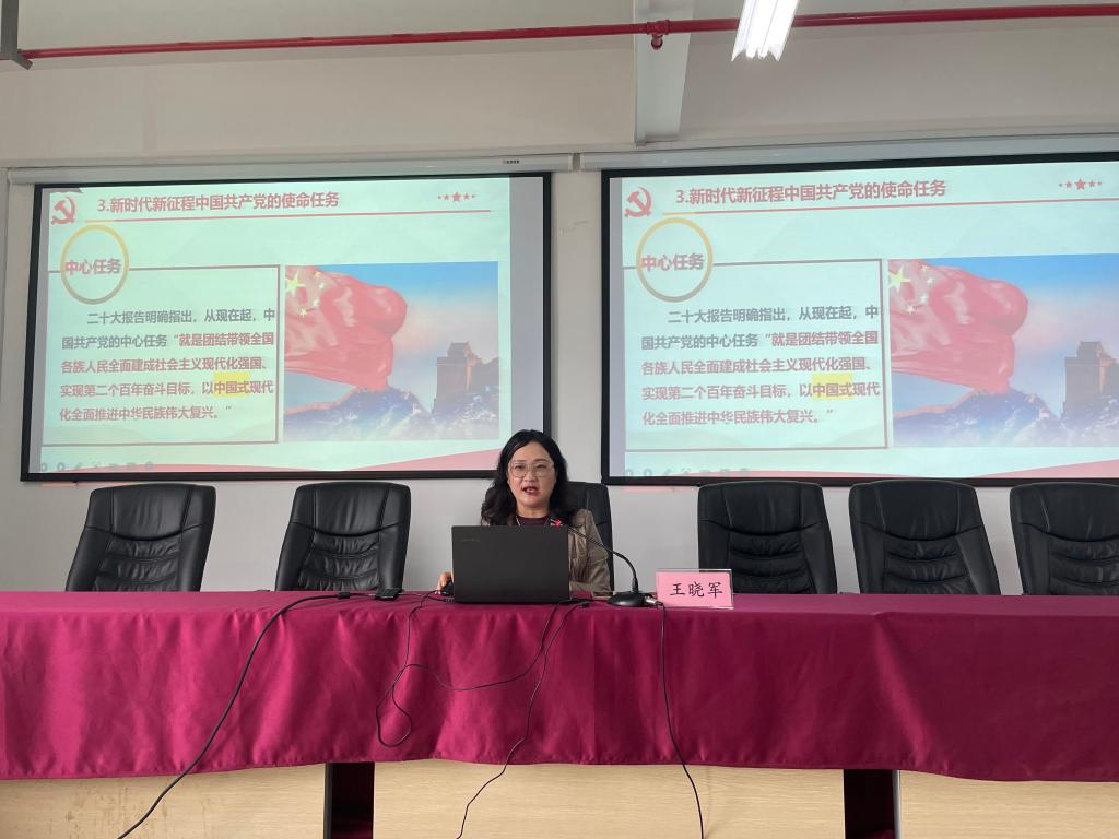 同时,授课还针对青年师生群体特点,带领大家着重学习了党的二十大报告中关于科教兴国战略、人才强国战略、创新驱动发展战略以及团结奋斗的时代要求、习近平总书记对青年的殷切期望,号召广大青年要坚定不移听党话、跟党走,怀抱梦想又脚踏实地,敢想敢为又善作善成,立志做有理想、敢担当、能吃苦、肯奋斗的新时代好青年。