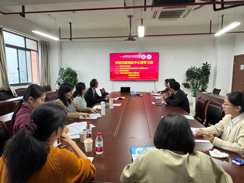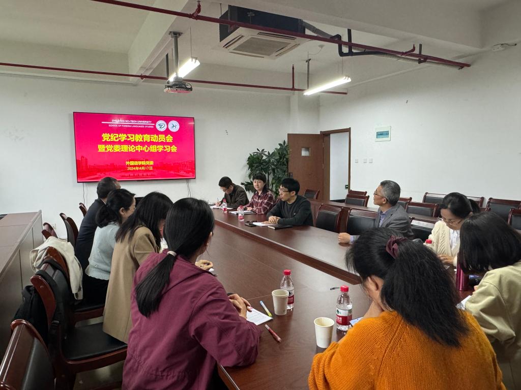 公司党委副书记、纪委书记夏青领学《中国共产党纪律处分条例》,从条例的起源和发展、主要内容、新旧条例对比分析等角度开展剖析,同时结合两个反面案例开展警示教育。此外,此次理论学习中心组成员还就习近平文化思想、全国两会精神和《浙江省优化营商环境条例》进行交流讨论。大外二部党支部书记钱红英提到,高校老师要通过不断学习,提升个人文化修养,才能在课堂上潜移默化地影响员工,建立文化自信,更好地传播中国文化,讲好中国故事。日语系党支部书记陈越说到,作为老师有两个任务,第一个是教书育人,我们要把员工教育好,第二块是搞科研提升自己,要努力把这两方面的中心工作做好,同时把党纪学习教育融入到中心工作中。
