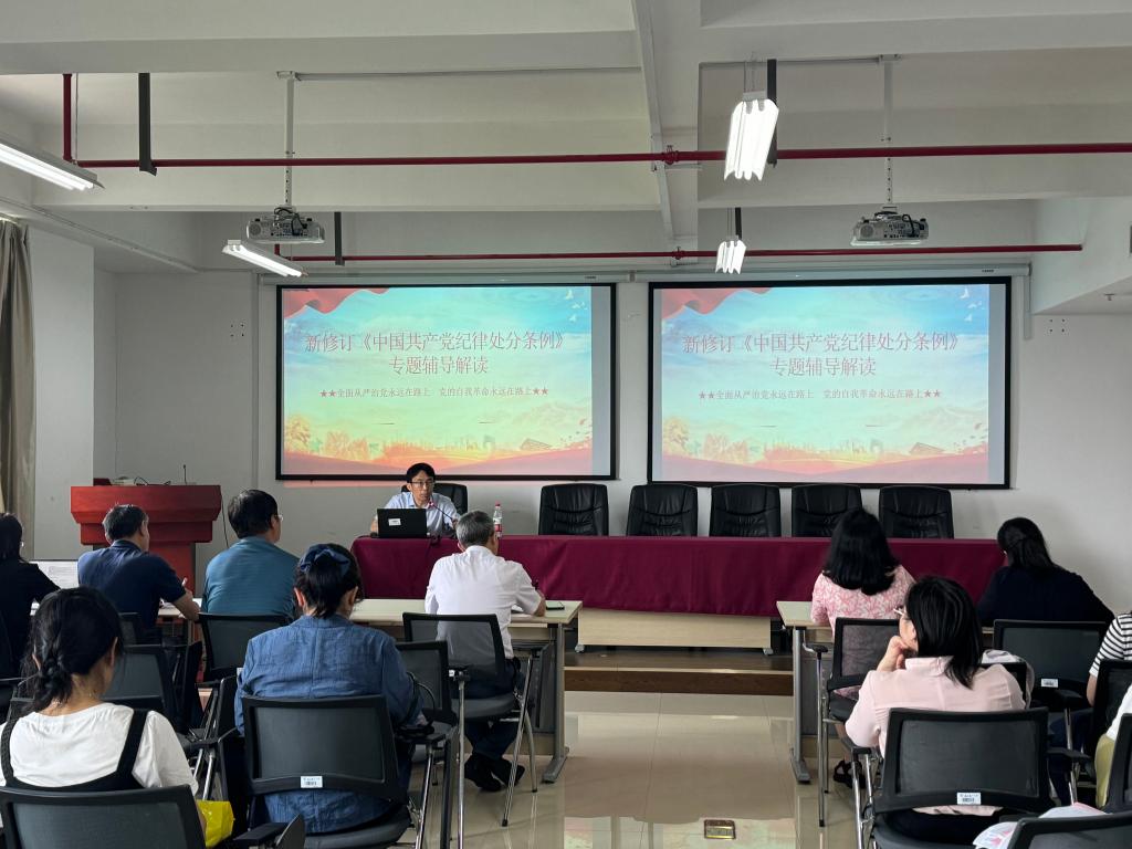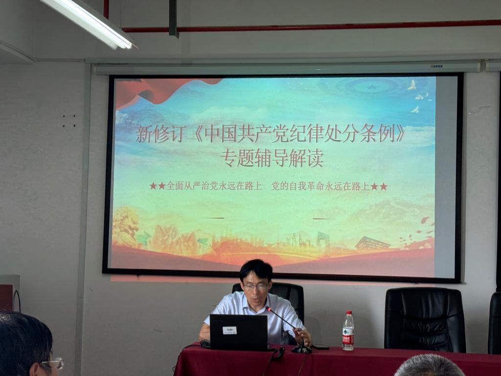 会上,张书记以《全面从严治党永远在路上》为主题,对新修订的《中国共产党纪律处分条例》进行专题辅导,他从党的纪律建设发展历程、《中国共产党纪律处分条例》修订的背景和主要过程、修订《条例》的重要意义、新修订《条例》的特点和看法、学习贯彻新修订《条例》三方面的要求等五个方面进行解读。他指出,新修订的《条例》进一步严明政治纪律和政治规矩,大家要深刻把握加强纪律建设是全面从严治党的治本之策,坚持党性党风党纪一起抓,使铁的纪律转化为党员干部的日常习惯和自觉遵循。