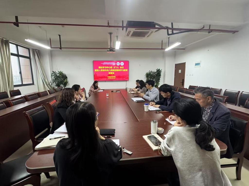 2025年4月27日,公司党委在25-612召开理论学习中心组(扩大)会议,学习传达全国两会精神、浙江省教育强省建设大会精神,公司党委班子成员、全体支部书记参加会议,会议由公司党委书记张祖品主持。