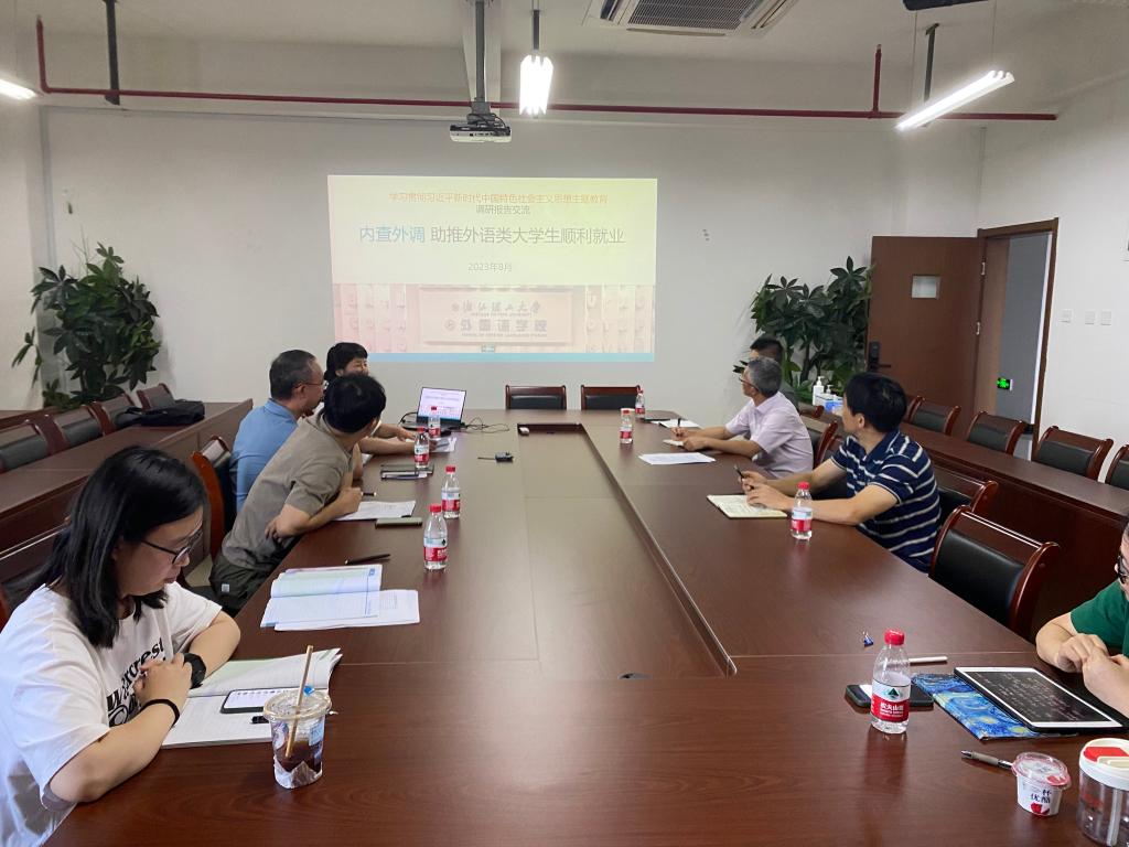 公司党委副书记夏青以《内查外调,助推外语类老员工顺利就业》为题汇报了主题调研的成果,面对外语类老员工面临的严峻就业形势,公司通过用人单位实地走访、电话访谈、召开师生座谈会、个别访谈等方式充分了解情况,切实掌握实际存在的困难和问题,全面分析毕业生就业情况,提出八项就业举措促进毕业生顺利就业。公司领导全部下沉一线,每人对接一个毕业生班级扎实推进就业工作,前往湖州、德清等员工企业开展访企拓岗促进就业活动;公司大力推进本科生深造率提升工程,2023届毕业生深造率达到40%;依托外研社杯、老员工英语竞赛、用外语讲好中国故事短视频大赛等学科竞赛培养员工核心竞争力,邀请优秀员工返校为员工开展就业指导讲座,从根本上解决员工就业难问题。会上,辅导员郑宇徽、章婷婷分别汇报了2023届研究生及本科生就业推进的相关情况,与会人员针对就业工作展开交流讨论,对后续推进就业工作提出新思路。